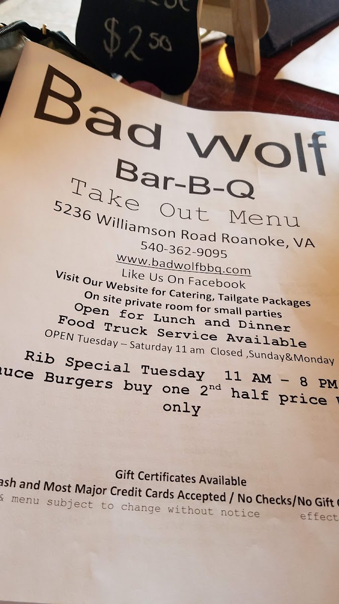 Welcome to Bad Wolf Bab b q, where barbecue dreams come true! Nestled in Roanoke, Virginia, this hidden gem boasts a mouthwatering menu that celebrates the rich, smoky flavors of America’s BBQ culinary tradition. Start with a whole rack of ribs, tender and infused with a smoky glaze, perfectly paired with sides like collard greens and crispy hush puppies. If you’re a sandwich lover, try the Bad Wolf Bologna Sandwich or the BBQ Sub, both packed with flavor and served on warm Texas toast.